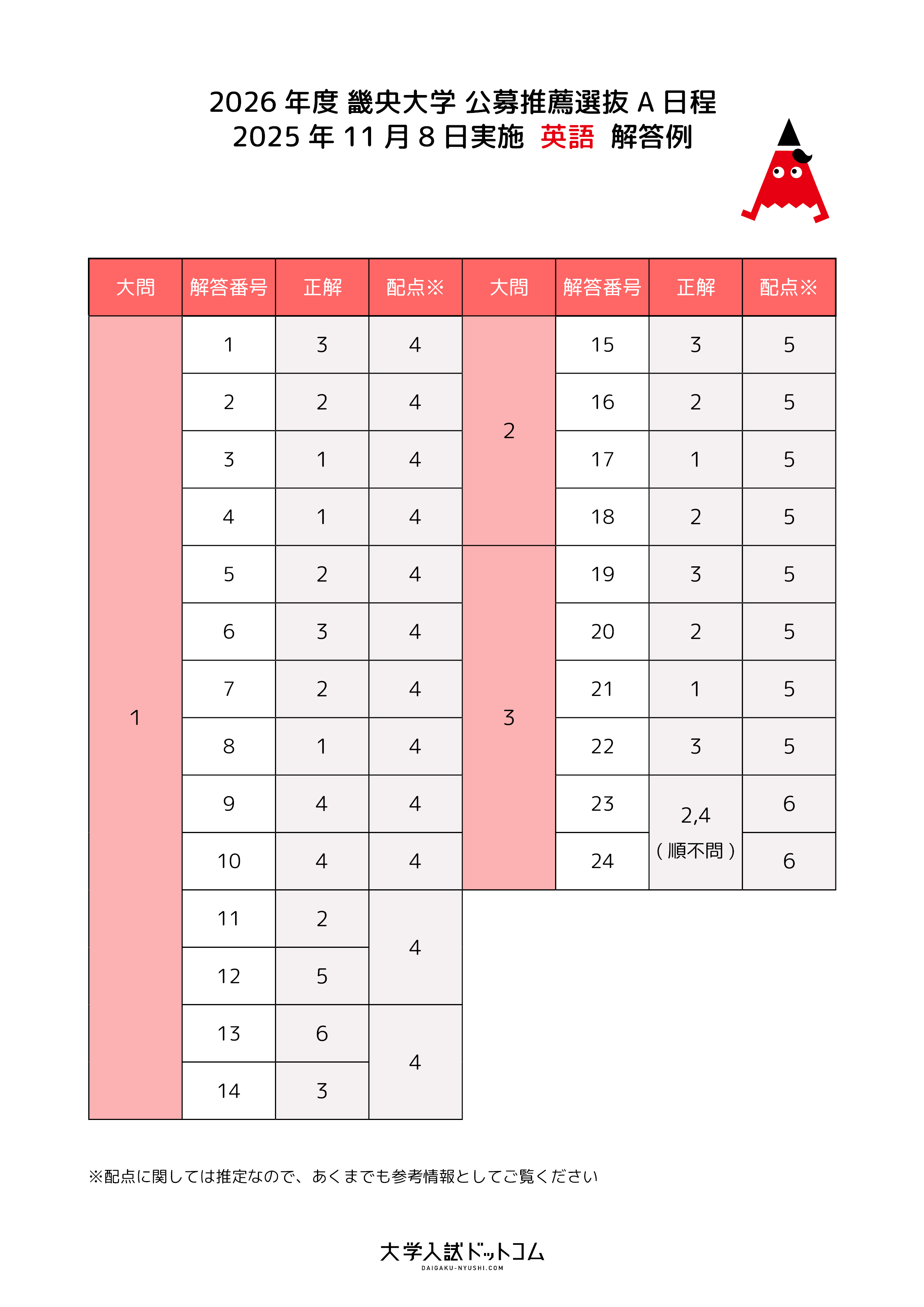 「大学別模試 畿央大学 公募推薦選抜 英語」はこちら